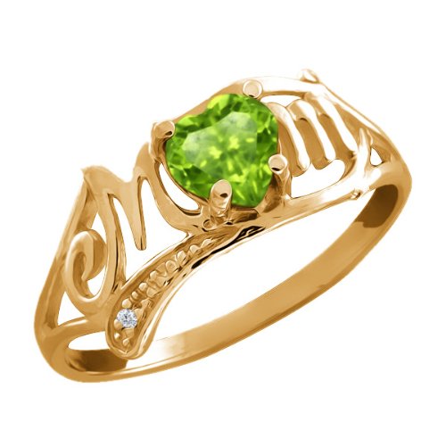 0.52 Ct Heart Shape Green Peridot 14K Yellow Gold Mom Ring