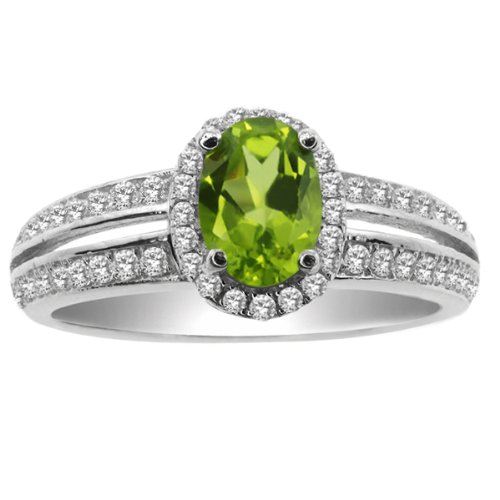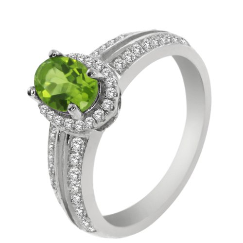 1.10 Ct Oval Green Peridot 925 Sterling Silver Ring