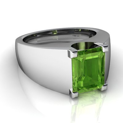 14kt Gold Peridot 9x7mm Emerald_Cut Men’s Ring