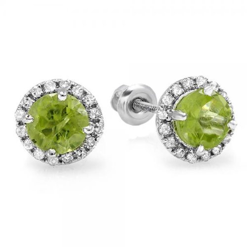 This lovely Earrings features white diamonds and Green Peridot (Combined wt) in Halo setting. All stones are sparkling and 100% natural. All our products with FREE gift box and 100% Satisfaction guarantee. SKU # KS921