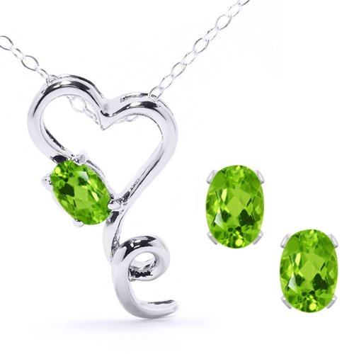 2.12 Ct Green Peridot 925 Sterling Silver Heart Pendant Earrings Set 18″