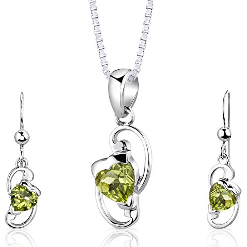 Peridot Pendant Earrings Necklace Set Sterling Silver Heart Shape 1.75 Carats