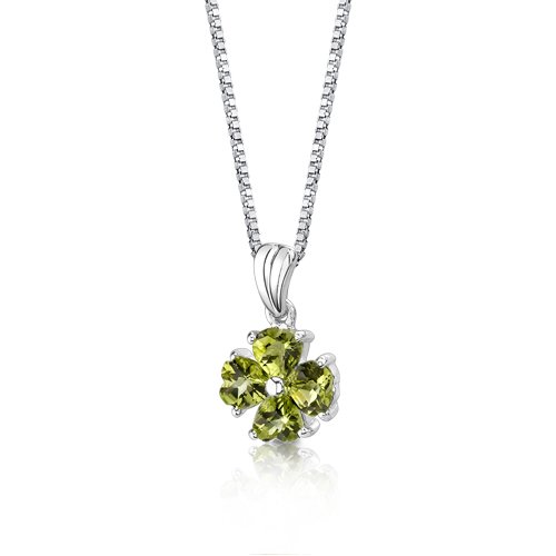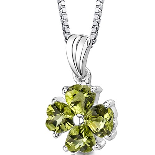 Gemstones: Genuine Peridot, 4 pieces, Heart Shape, Checkerboard Cut, 5.00mm. Gemstones have a vibrant rich color and eye clean clarity. Pendant is in Sterling Silver with .925 stamp and measures 3/4 x 1/2 inches and weighs 1.70 grams. Pendant features top quality workmanship and a beautiful finish. Includes Free 18 inch Sterling Silver Box Style Chain, Free Ribbon Gift Box.