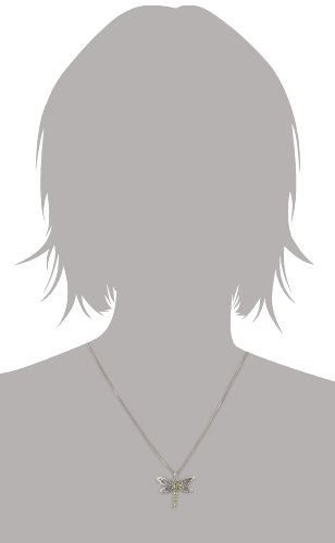 Sterling silver necklace featuring dragonfly pendant composed of faceted marquise-shape gemstones and small diamonds