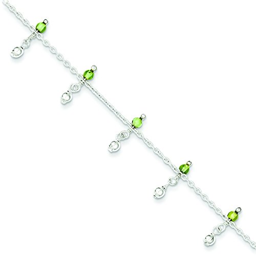 Sterling Silver Peridot Bead Ankle Bracelet